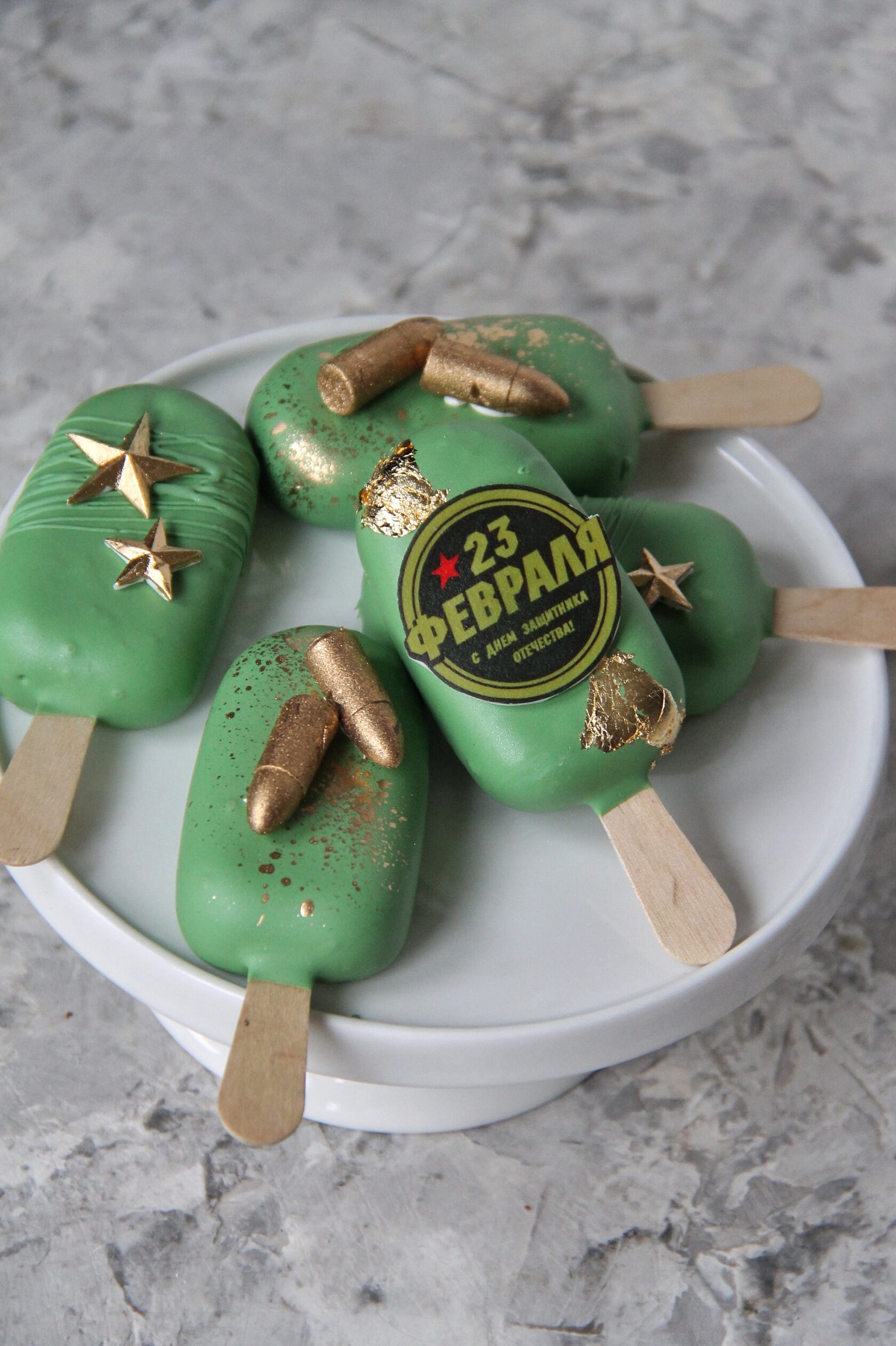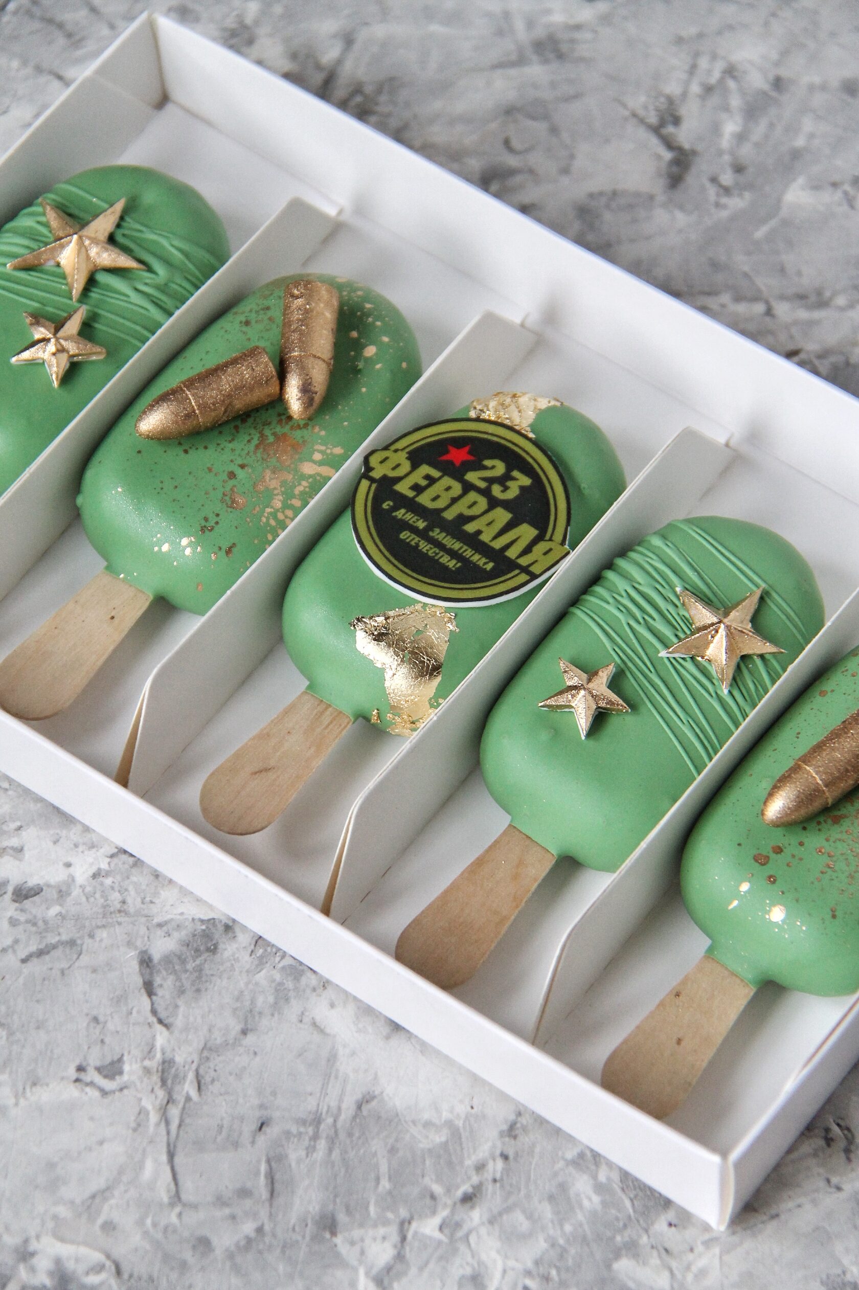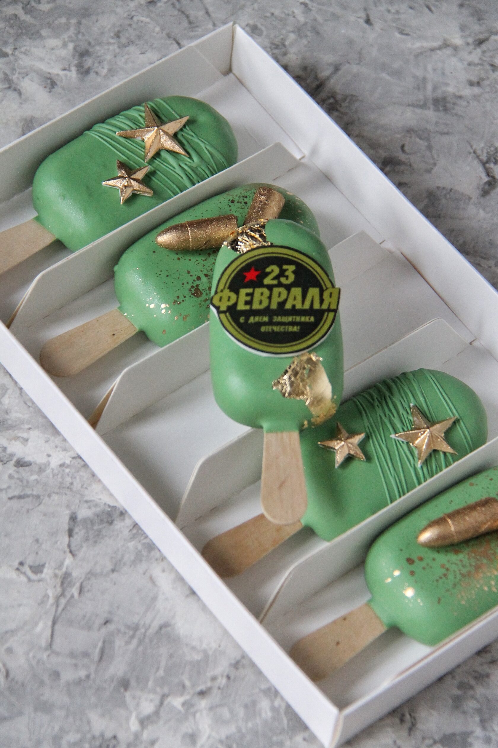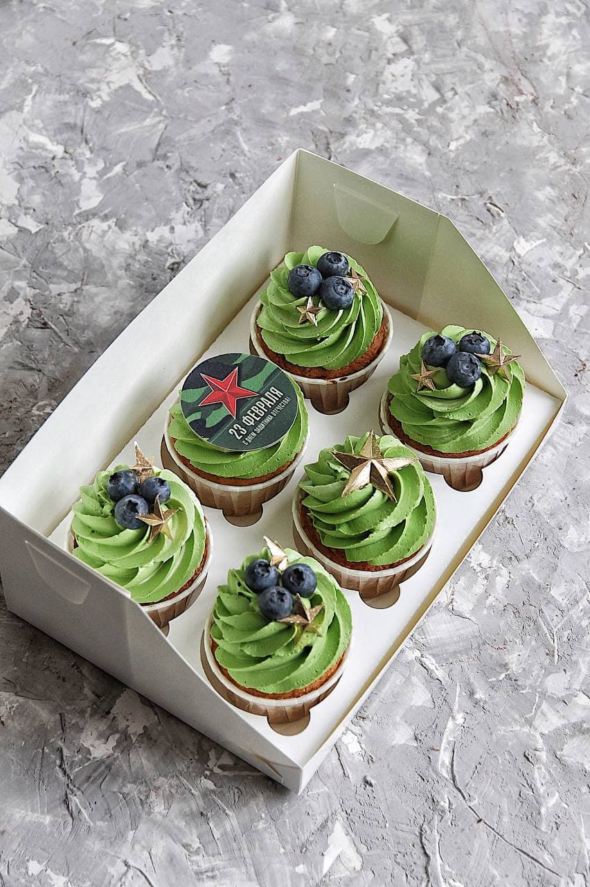 В наборе 6 муссовых пирожных ассорти с праздничным декором