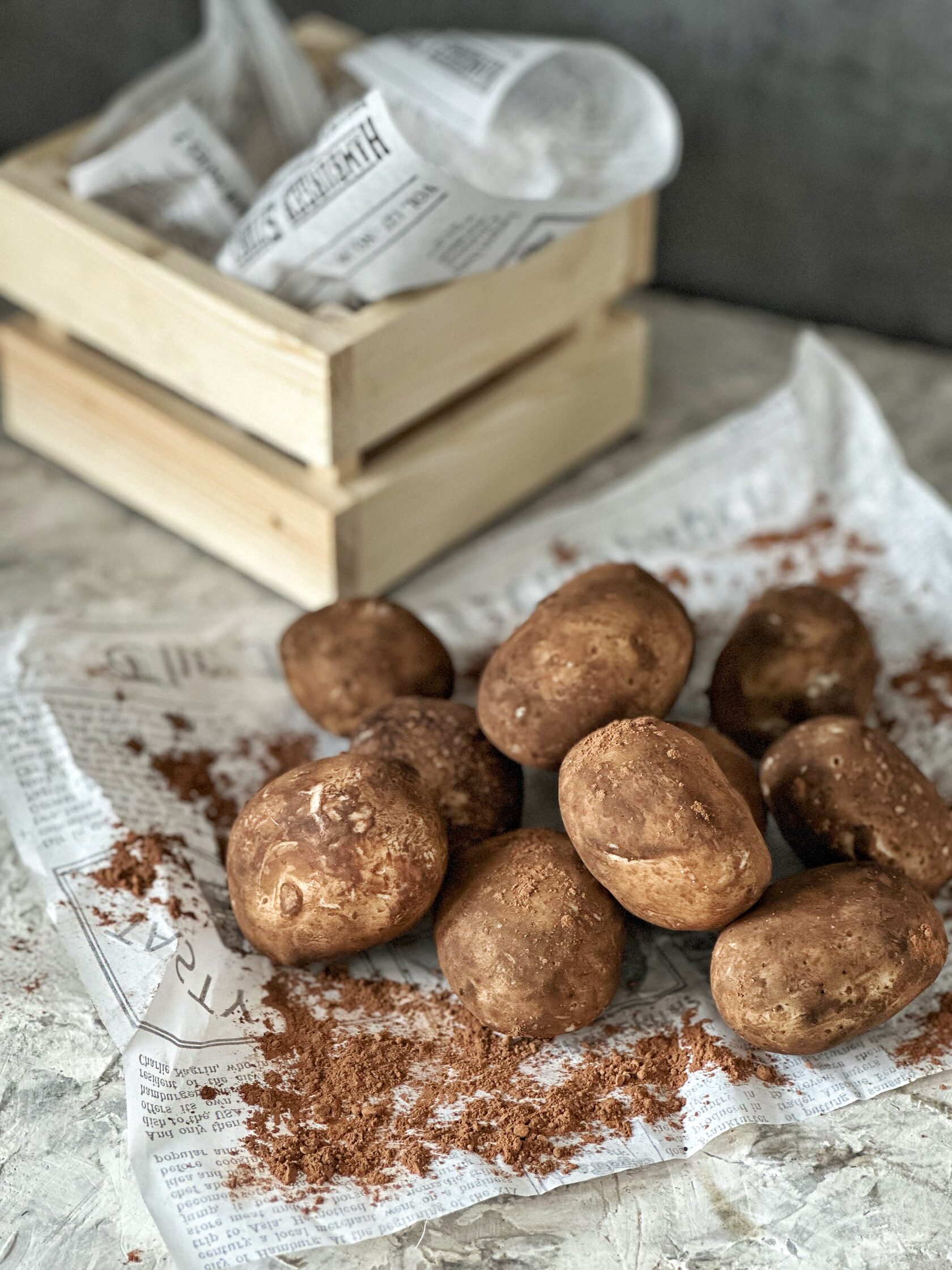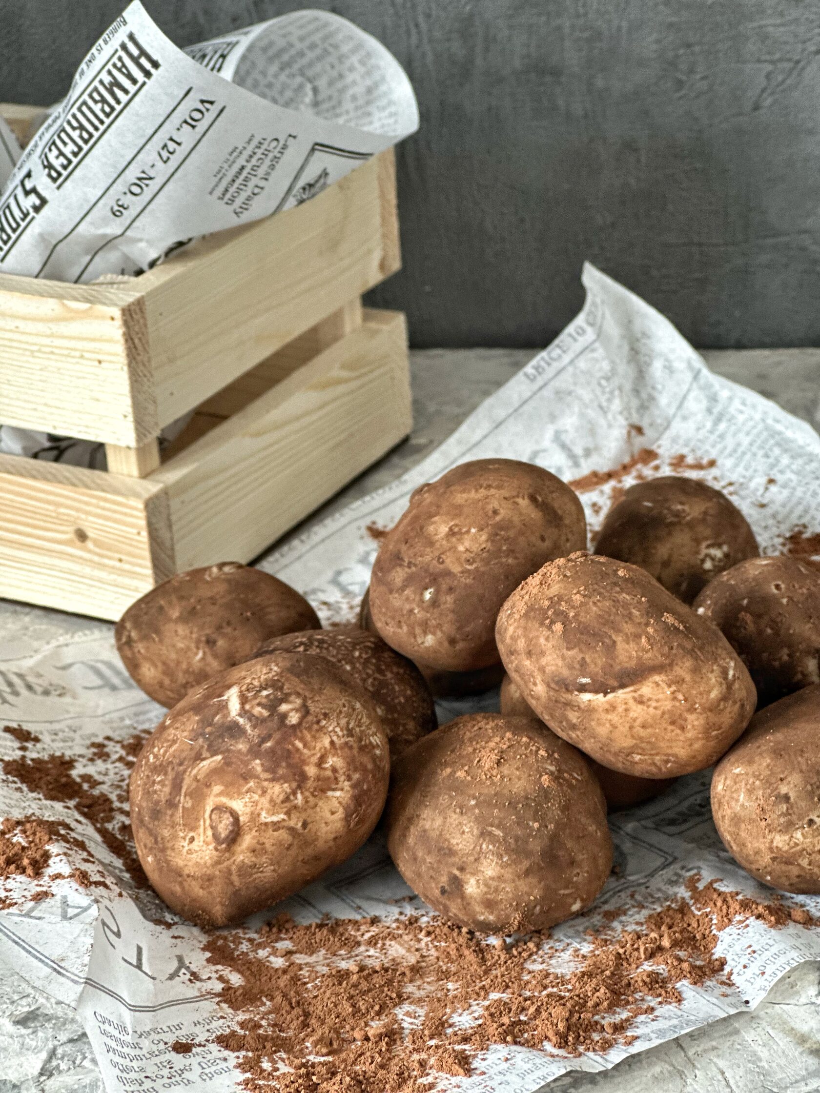 Нежное пирожное из крошки бисквита с кремом в шоколаде.