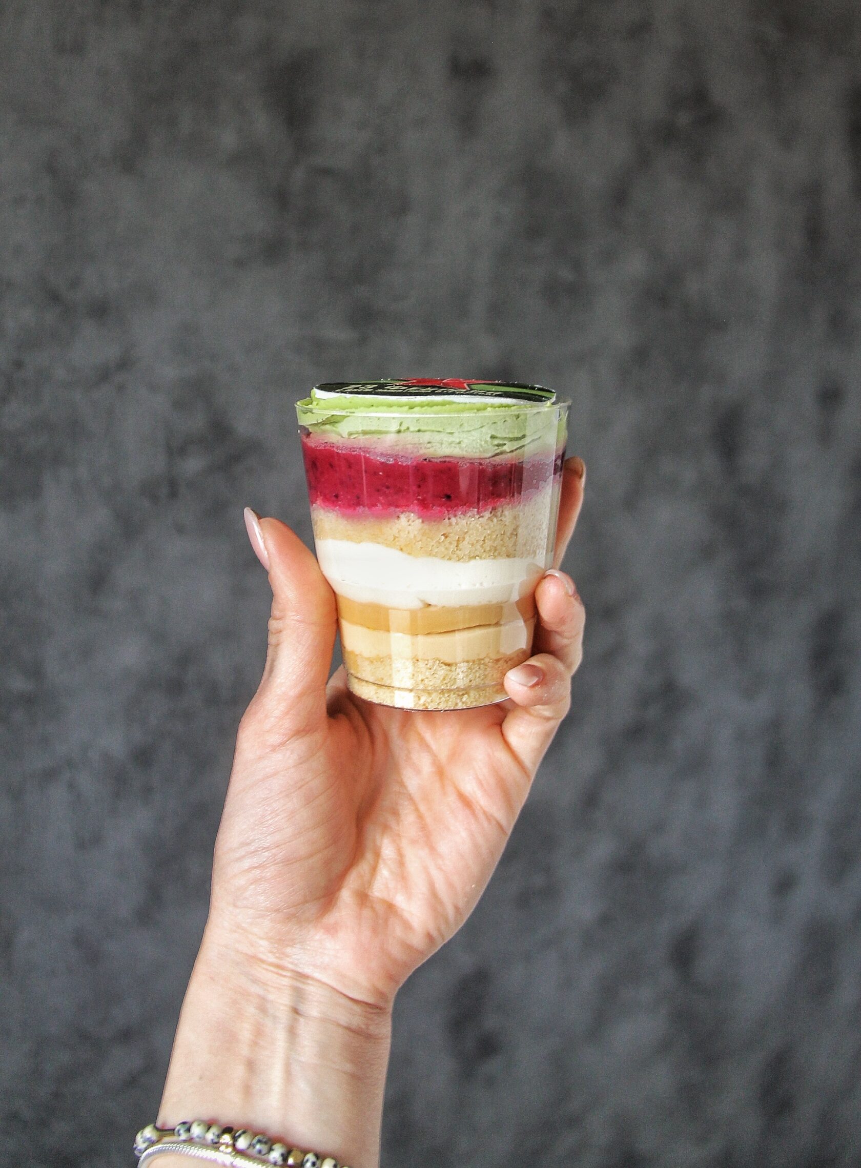 Нежный десерт из крошки бисквита, сливочно-сырного крема и начинок в одноразовом пластиковом стакане.