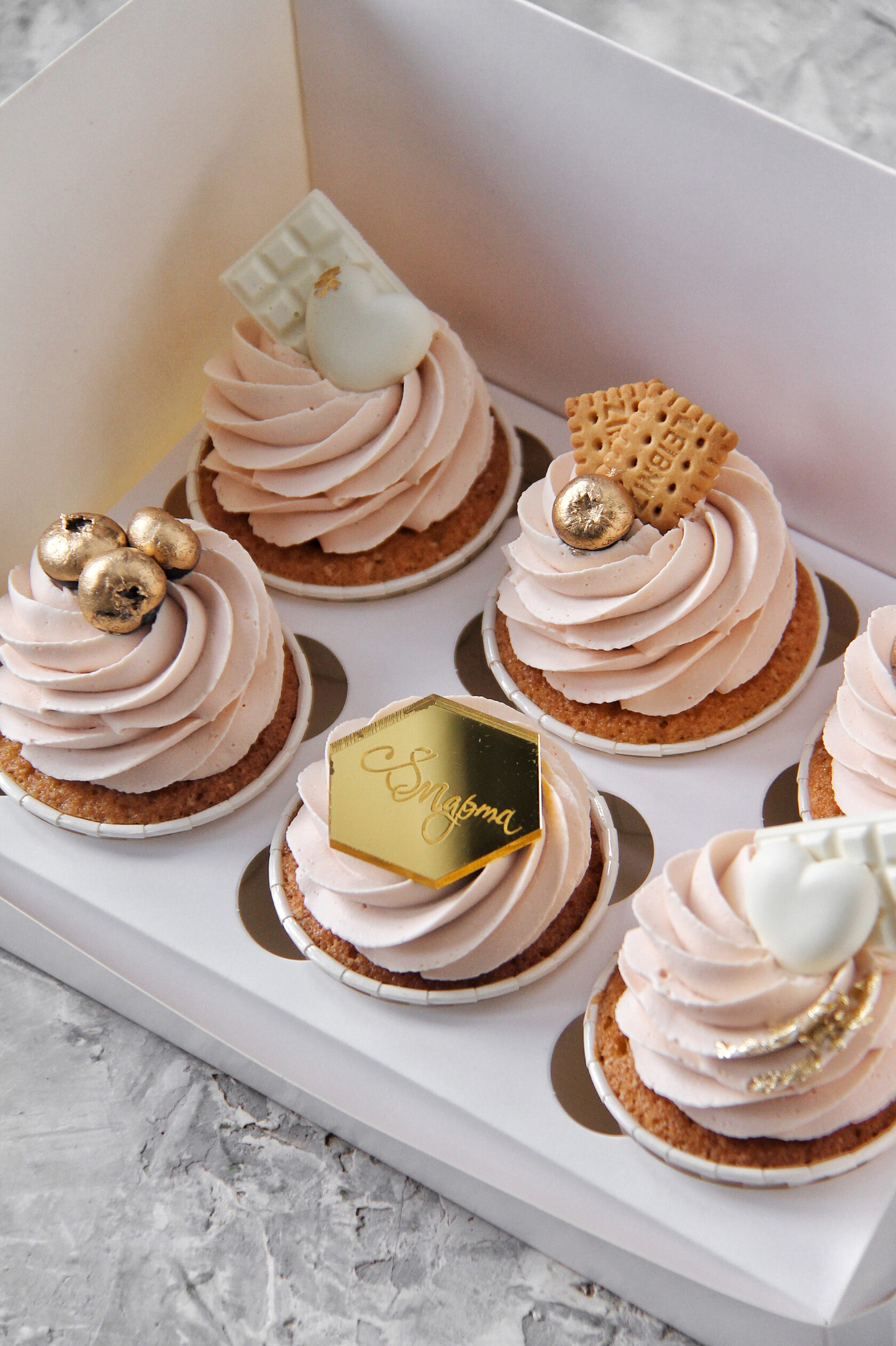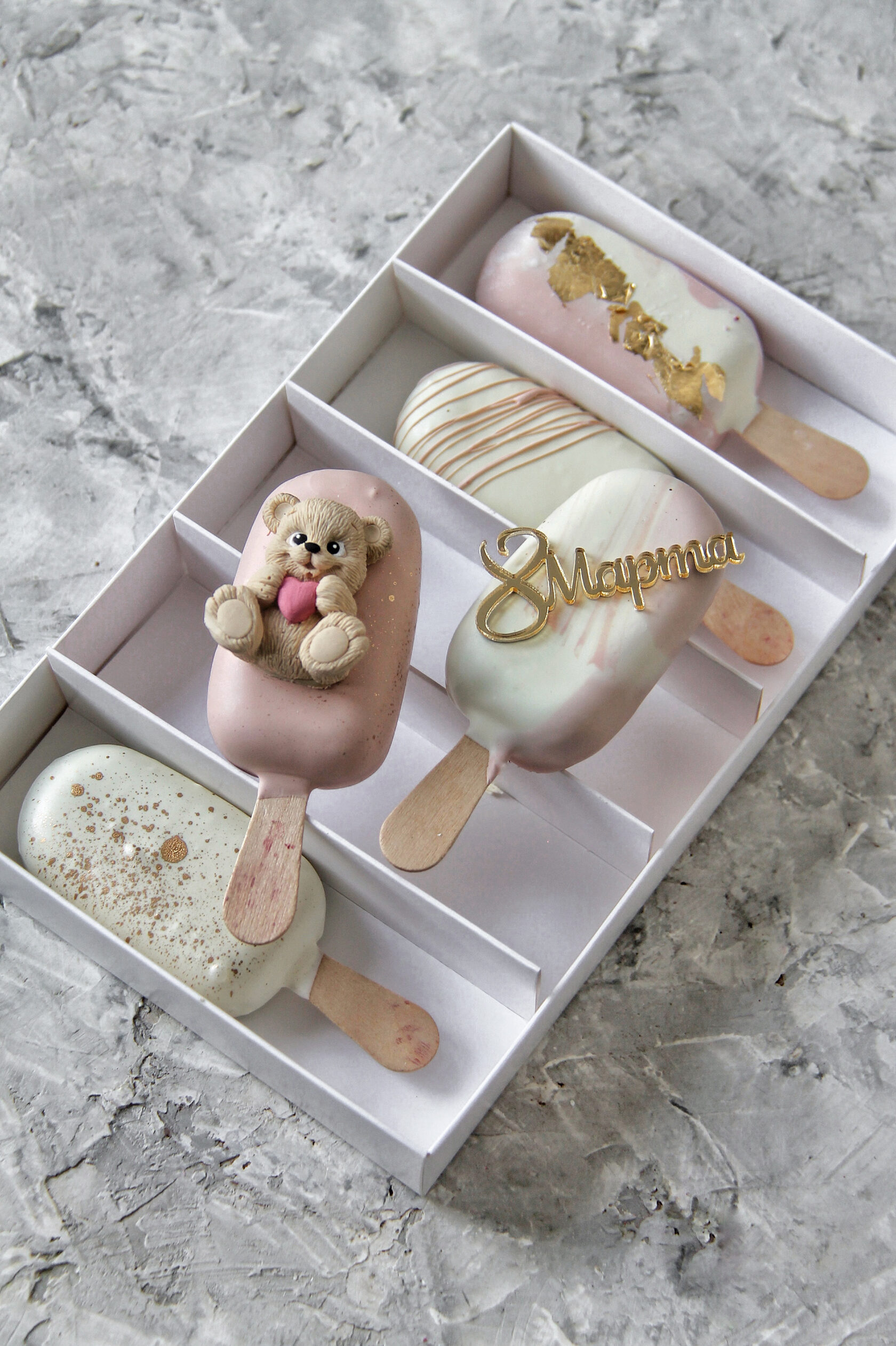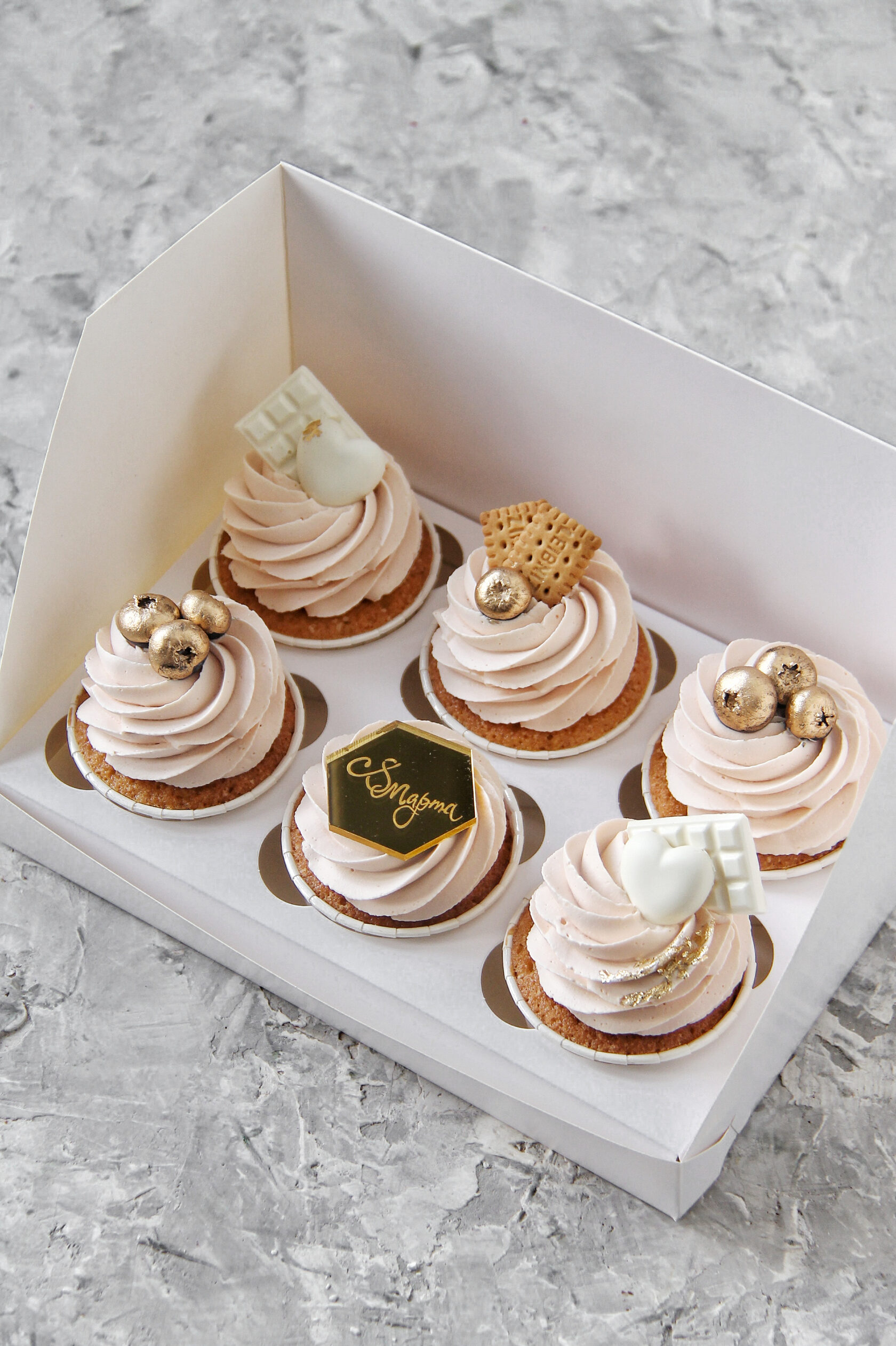 В наборе 6 муссовых пирожных ассорти с праздничным декором