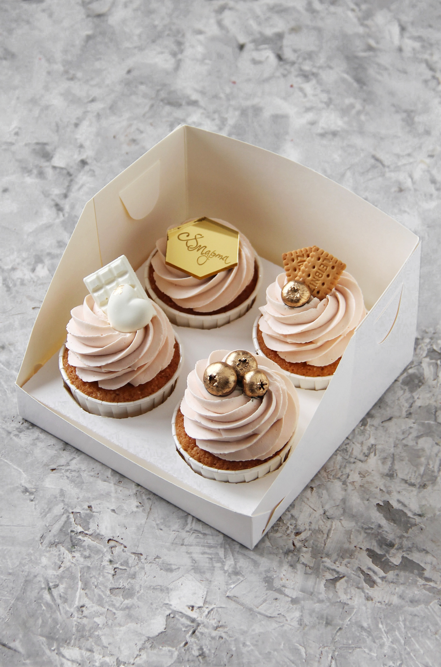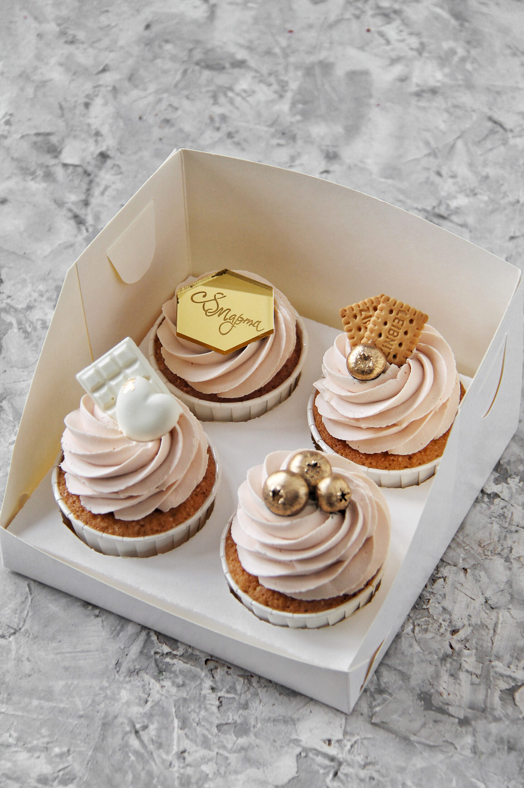 В наборе 4 муссовых пирожных ассорти с праздничным декором